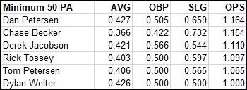 Aaron Pfaff .458 .629obp 3SB,